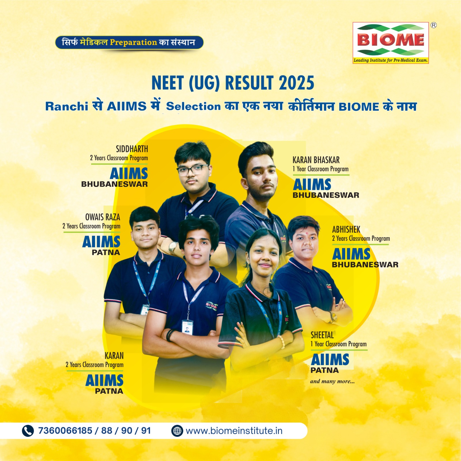 Ranchi Student will again outperform in NEET - 2017, But BIOME INSTITUTE would hold the flag.